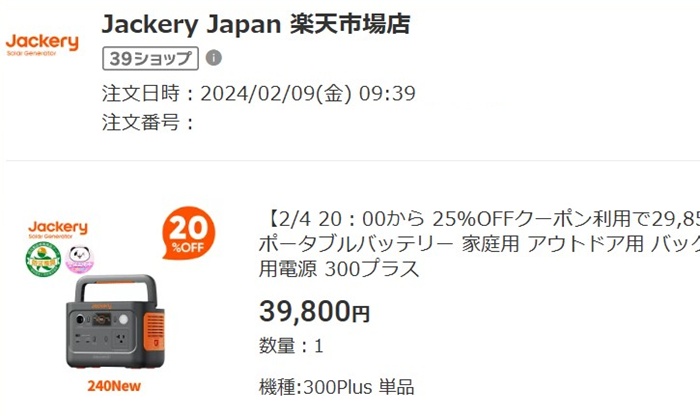⇒Jackery ポータブル電源 240 New 256Wh リン酸鉄 長寿命 定格300W