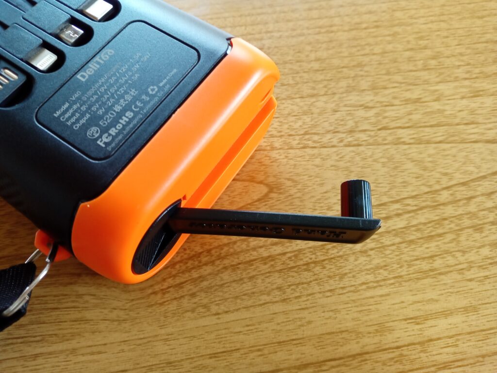 ソーラーパネルだけではなくて、手回し充電もできるので