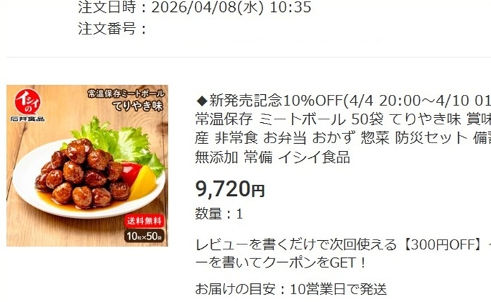 長期保存できる食品の発送が、かなり遅れています。