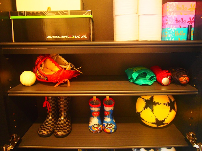 下段は子供の靴の場所にするなどして、取り出しやすいようにもしておくこと。