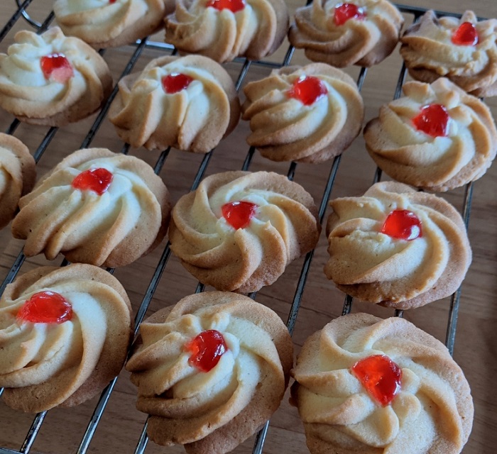やはり、絞り出しクッキーにはドレンチェリーはかかせません。