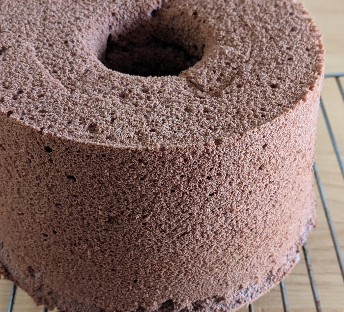ビターチョコを使った、ざっくりシフォンの完成です。