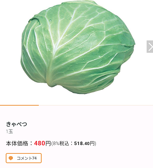 私が利用している宅配コープでは、一玉150円くらいで