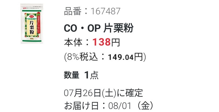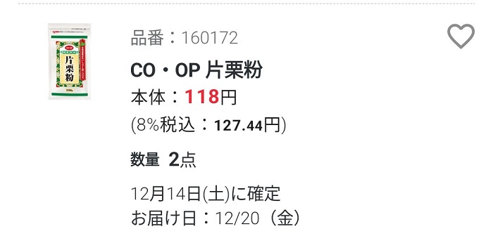 たまたま宅配コープでの購入履歴が残っていた分があり