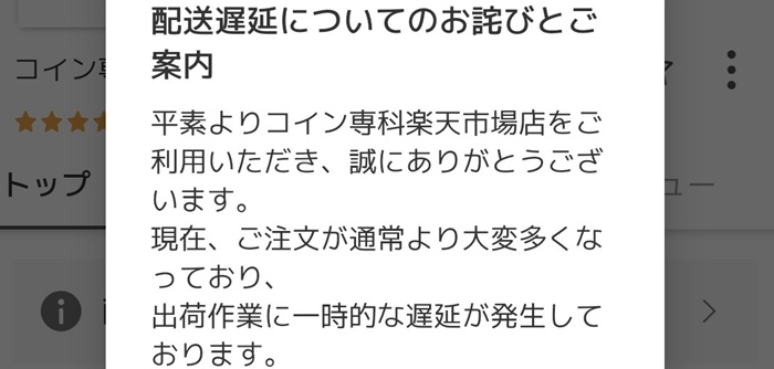 コイン専科楽天市場店でも、こういった表示あり。
