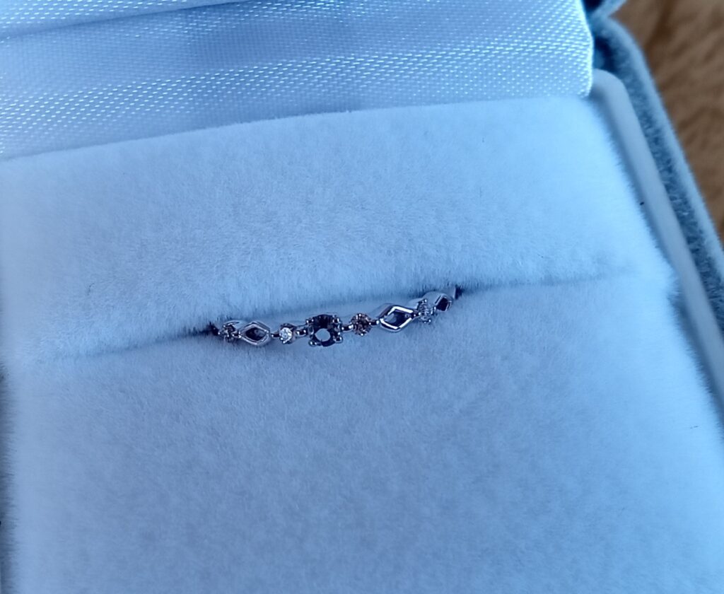 こちらはホワイトゴールドのアクアマリンのピンキーです。