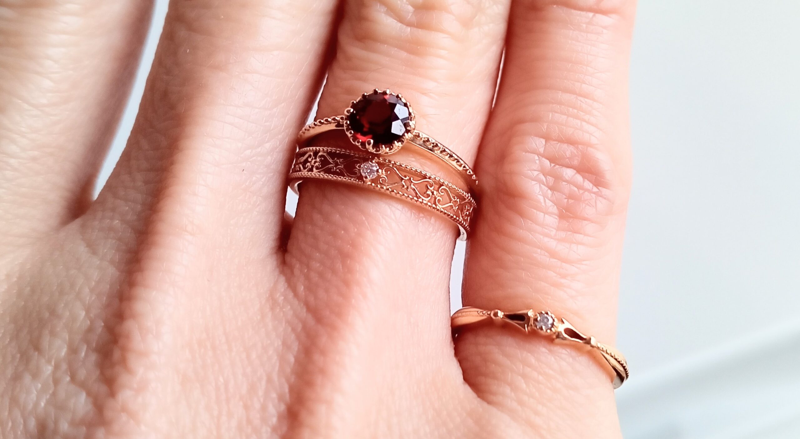 前に購入していたガーネットの色石リングと合わせても