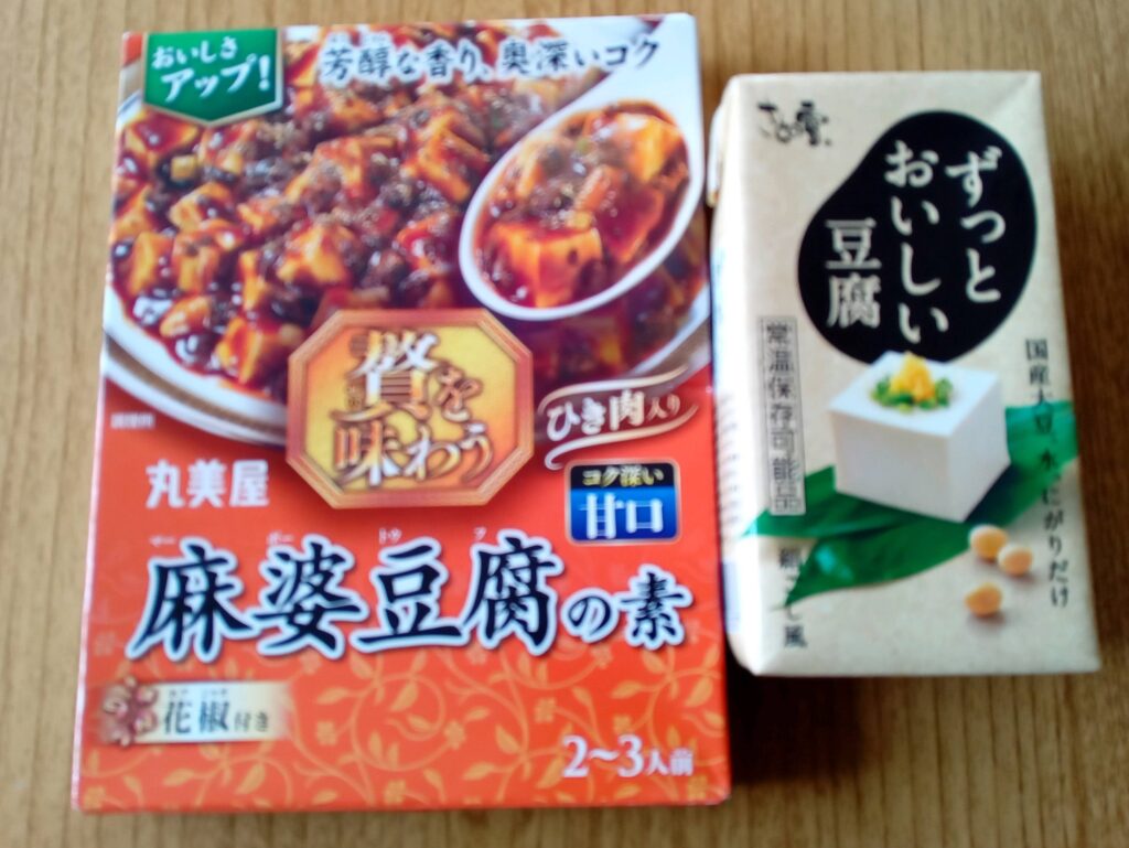 常温豆腐と、麻婆豆腐の素をセットで準備するのもありです。